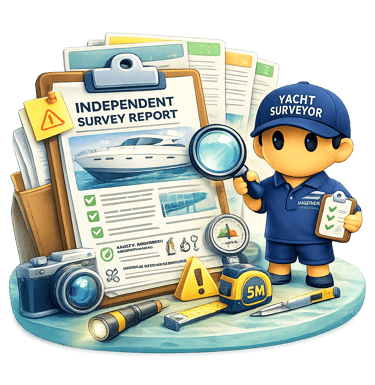 ✅ Detailed independent yacht survey reports with technical findings