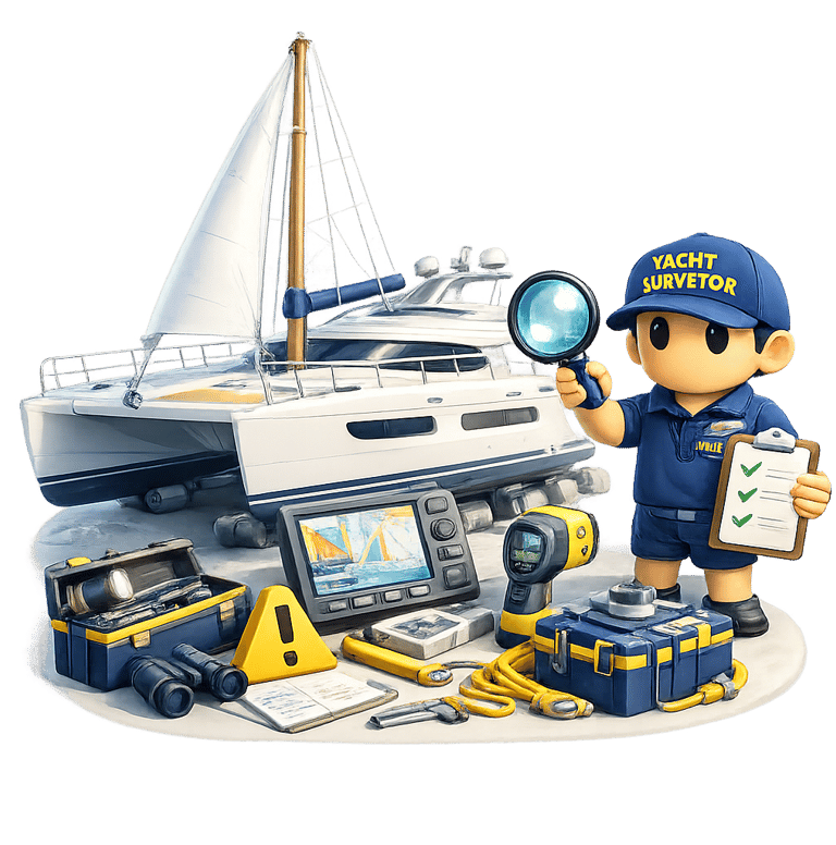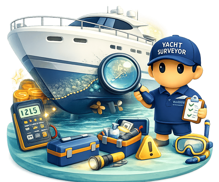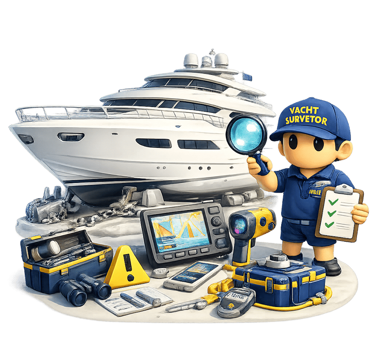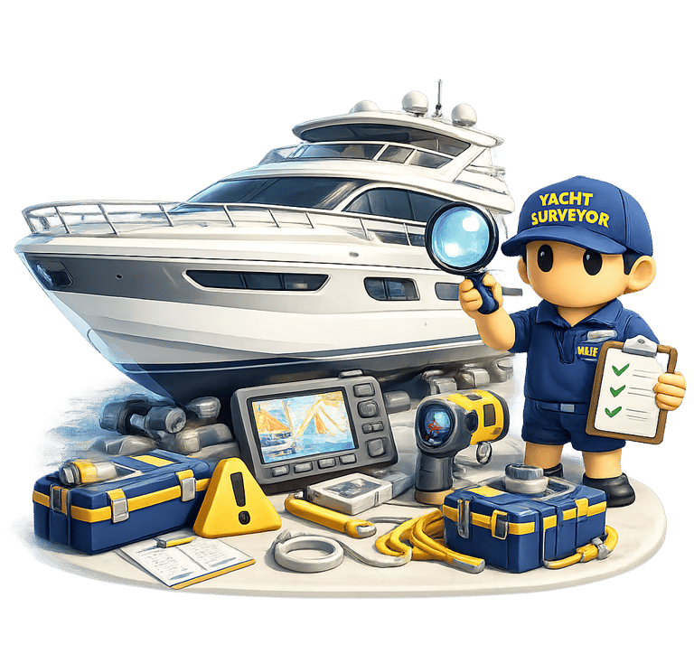 Professional yacht surveys determine the structural condition, onboard systems status, safety compliance, and market value of a yacht through detailed technical inspection.